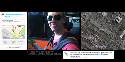 De uitdaging binnen dit project was om van alle losse clipjes en screengrabs een eenheid te maken. Zo zitten er naast de HD-shots van de Sony NX5 héél veel i-phone filmpjes in, honderden twitterberichten, screengrabs van Foursquare check in’s, kaartjes van google-maps, screenrecording van google-earth en ook nog zelf gemaakte animaties van de reisroute. Al met al een bont gezelschap van verschillende media.